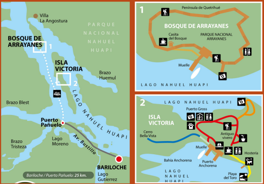 La excursión comienza en Puerto Pañuelo, en la majestuosa Península de Llao Llao. Tras aproximadamente una hora de navegación por el Lago Nahuel Huapi, se llega a la Península de Quetrihué, hogar del famoso Bosque de Arrayanes.